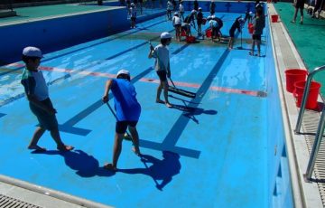着衣水泳の体験をしました 水難学会の指導員の方に来ていただき、万が一の水の事故に対しての学習をしました。 いろいろな身近なものが浮き具になることや、靴が浮く助けになることも知りました。 救助まで「浮いて待つ」ことの大切さ…