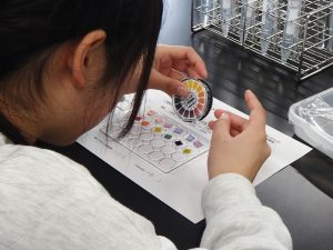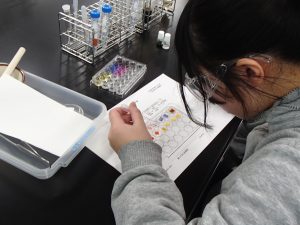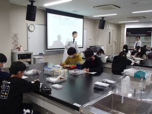 水溶液の学習をしました。リトマス試験紙やBTB液、フェノールフタレイン溶液や㏗など酸やアルカリ等、理科学習で学んだことやその先の学習や解説などを聞きながら、実験に没頭しました。