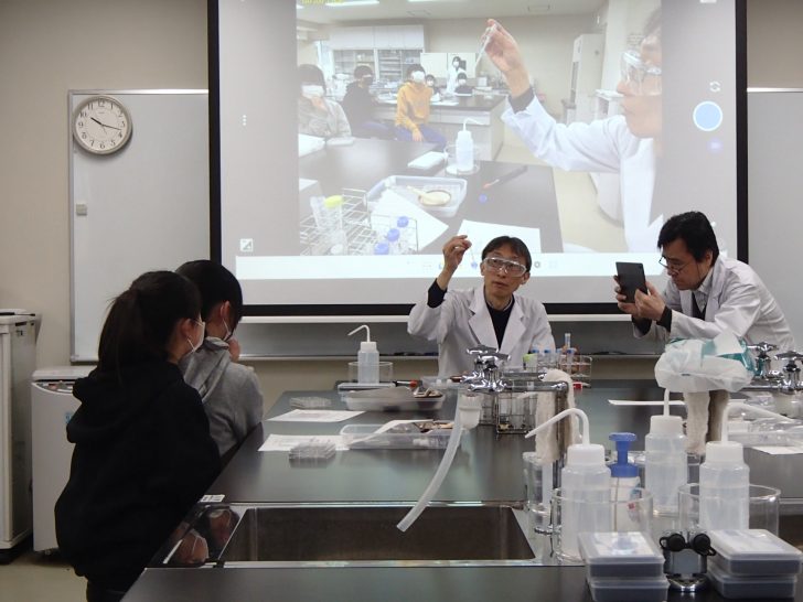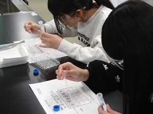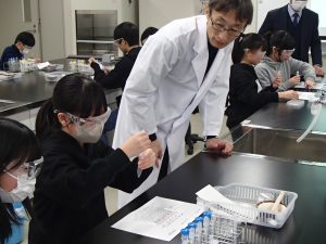 6年生児童が、学びの実験室の事業に参加し、長浜バイオ大学で大学の先生にご教授を受けながら実験を通じて学びました。