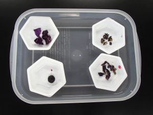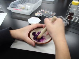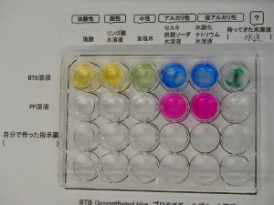 あらかじめ用意してきた調べたい水溶液も家から持参して調べることもしました。身近な赤キャベツやブルーベリーなどからも試薬が作れることも教えていただき、実際に試してみました。