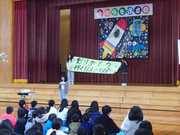 5年生が中心となり計画や呼びかけをして、全校で6年生を送る会を行いました。