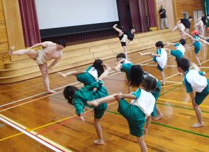 四股や股割や、実施に押したりしながら相撲に触れました。