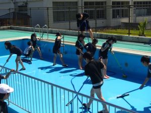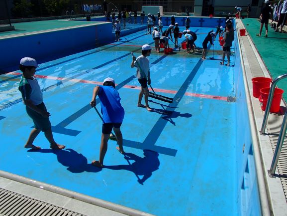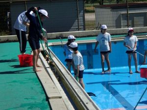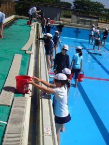 2025.06.05 4年生c15cnqwm プール掃除 間もなくプールでの学習です。 4,5,6年生が、プール掃除をしました。 間もなく始まる水泳学習に向けて一生懸命きれいにしてくれました。 みんな、どんどんきれいになるプールの様子に楽しみも増していたようです。