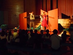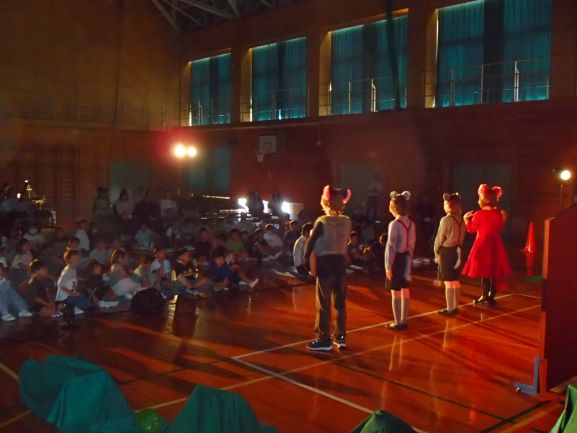 その後は、PTA親子研修会ということで、「劇団プラネットカンパニー」の皆さんによる「アレクサンダとぜんまいねずみ」の歌劇を児童・保護者共に観せていただきました。間近で、観て、また劇の後には、セリフや身振りの違いで演技を見せていただくこともあり、楽しい時間を過ごしました。