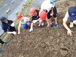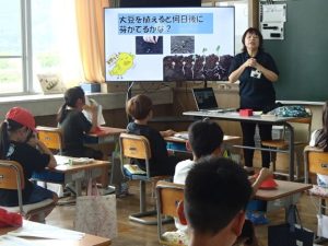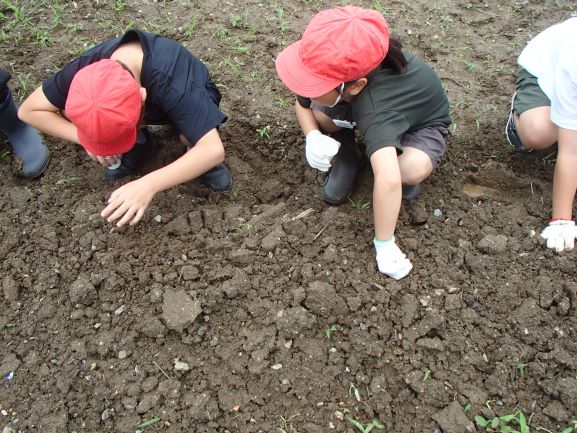 国語科でも形を変える大豆についての学習もしますが、身近な大豆について学びます。畑に植え、秋に収穫し、その後、豆腐作り、みそ汁づくりも計画しています。