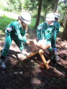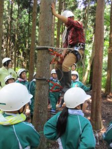 山登りや虫や生き物とのふれ合い、木を切ったり、木に登ったり、山での活動に1日たっぷり親しみました。たくさん汗をかきましたが、とても楽しい1日を過ごしました。