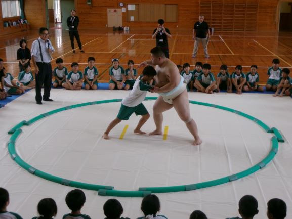 日本相撲連盟の方にお越しいただき、すもう教室を行いました。