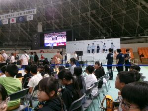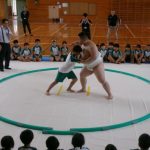 先日、すもう教室で学校へ来ていただいた選手の方の試合は見ることができませんでしたが、子ども達は横断幕を作って届けることができました。会場役員の方が、会場に各県の横断幕と並べて、掲げることもしていただきました。ありがとうございました。