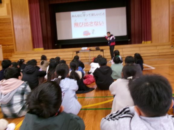 1~3年生、4~6年生に分かれ、交通安全教室を行いました。