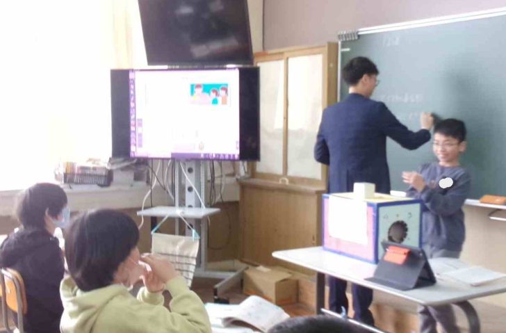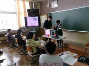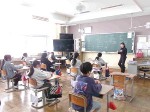 5年生では、算数で角柱や円柱の学習で、面や頂点等のヒントを出しながら立体についての学習を深めまていました。